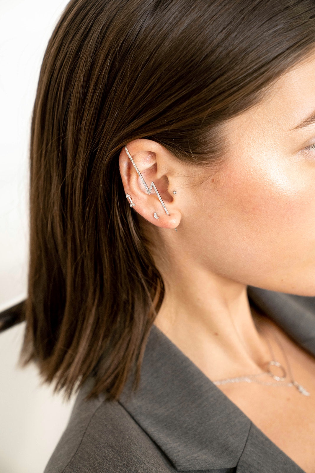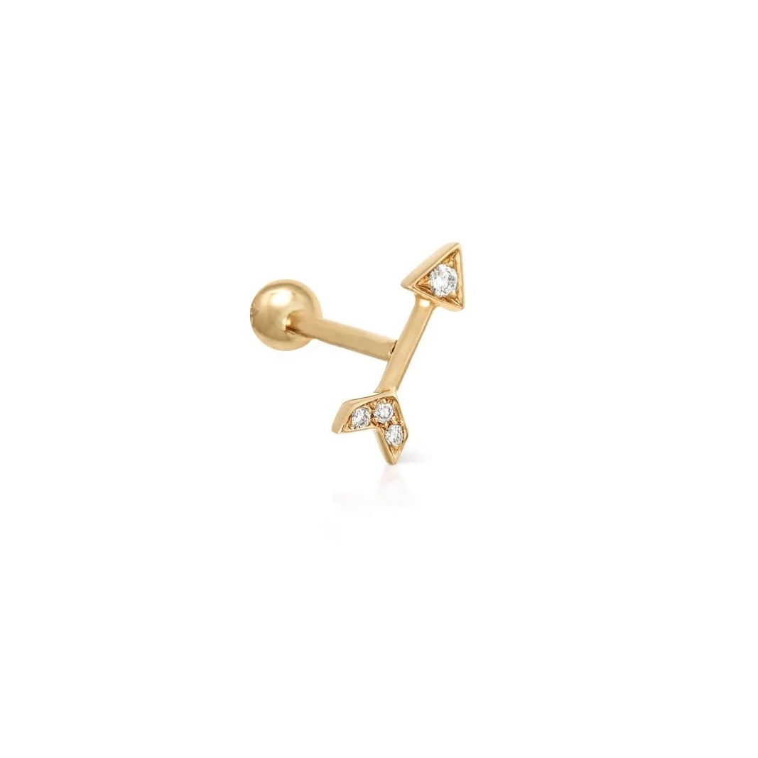 Crafted from high-quality sterling silver and plated with 18K gold, this piercing features a delicate arrow design adorned with dazzling diamond stones for a subtle yet eye-catching touch of elegance.